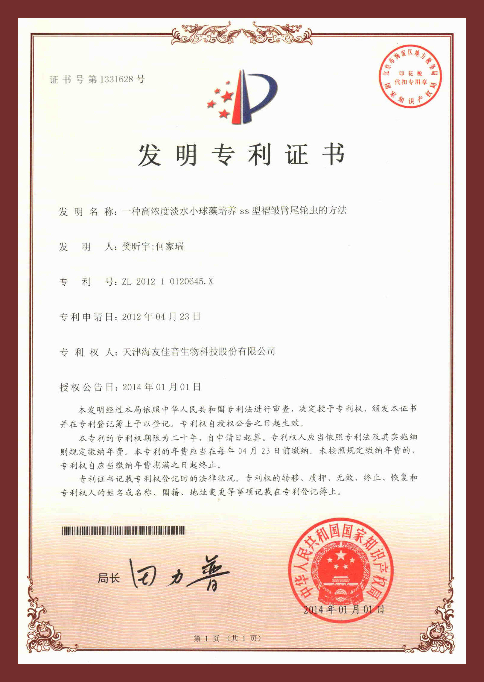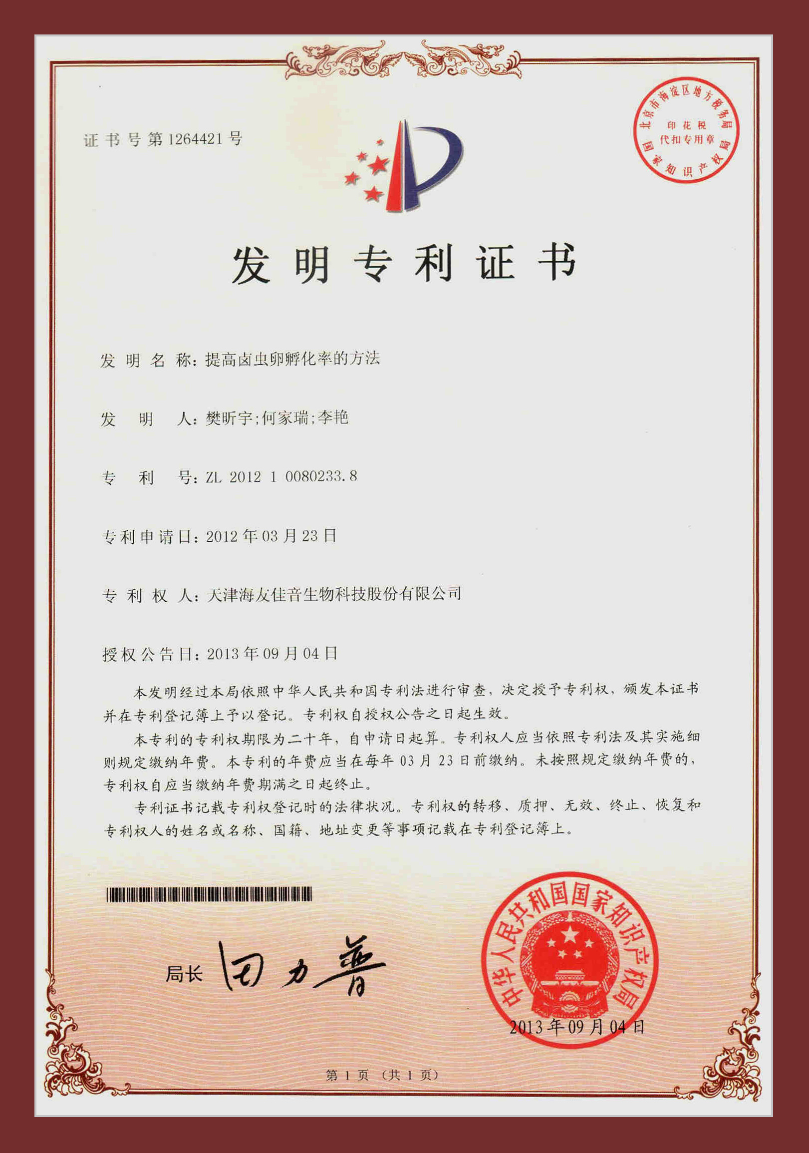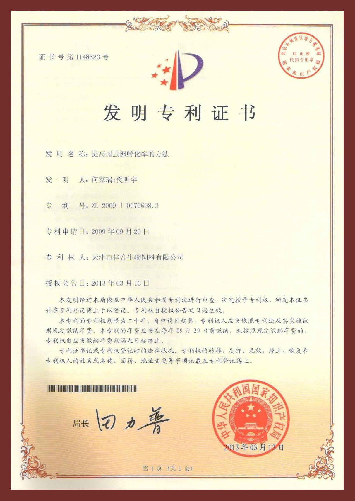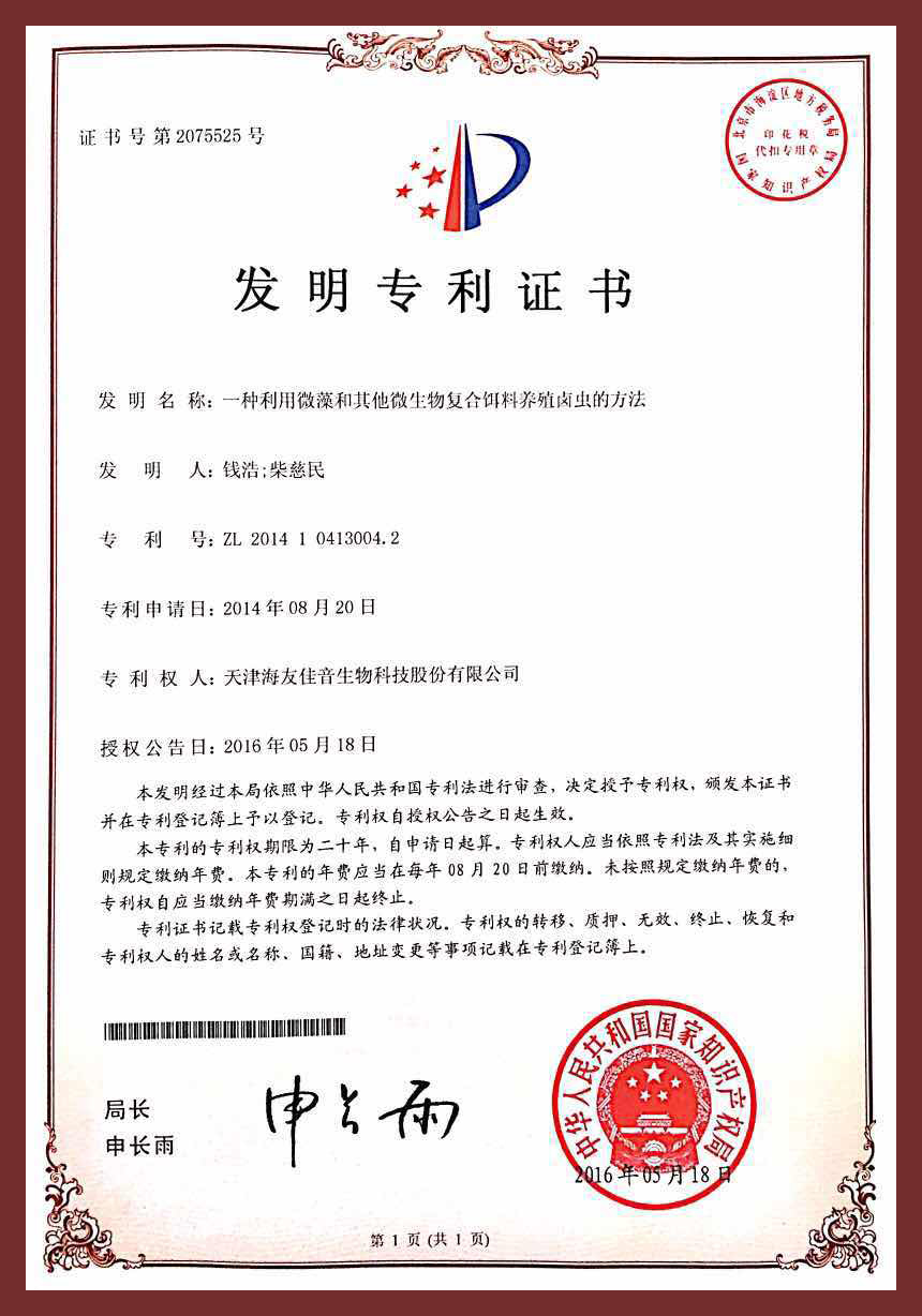 研發(fā)中心凝練研究方向,在水產(chǎn)經(jīng)濟動物增養(yǎng)殖、養(yǎng)殖水域生態(tài)與修復、水產(chǎn)生物餌料與種質(zhì)資源與水產(chǎn)品質(zhì)量檢測方面取得了一系列的成果,目前在研市級以上項目4項。研究成果獲多項獨立知識產(chǎn)權,目前擁有有效專利66件,其中發(fā)明17件,實用新型49件。“超小褶皺臂尾輪蟲高密度養(yǎng)殖關鍵技術”鑒定為國際先進水平,豐年蟲卵認定為“天津市名牌產(chǎn)品”、“天津市‘殺手锏’產(chǎn)品”、“天津市‘專精特新’產(chǎn)品”等榮譽稱號。